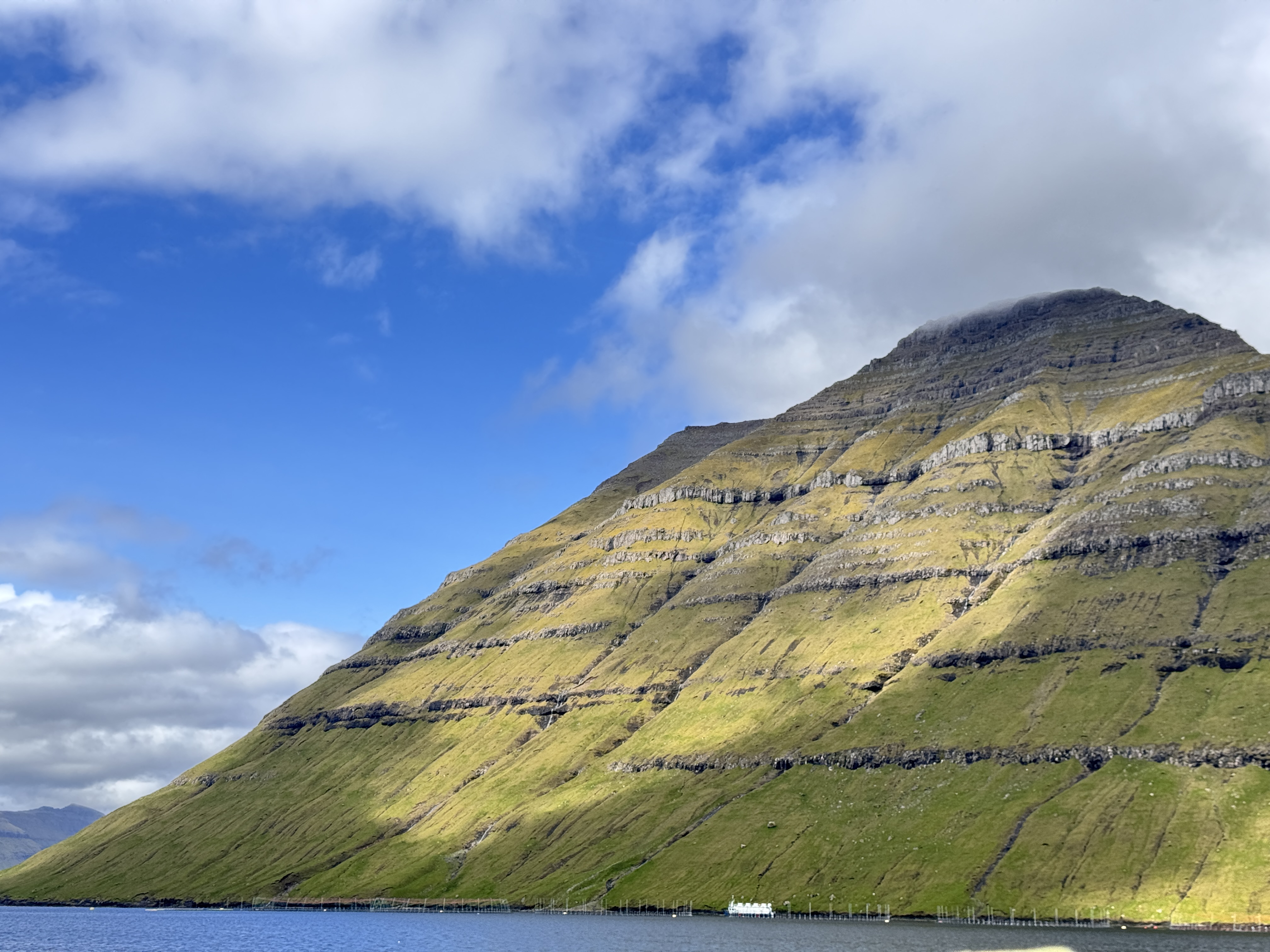칼소이 섬 가는 페리 시간표, 여름 시간표 페리를 탑승하자 구름이 서서히 걷혔다. 페로 제도에선 연중 60%는 흐리고 비가 온댔는데, 구름이 걷히는 것만으로도 맑은 날에 속한다고 한다. 점점 구름이 걷히더니 생각보다 더 맑은 날이 되었다. 이렇게 마지막즈음 맑은 날을 본 게 내심 기뻤다. 페리 타는 내내 맑아진 하늘과 신기한 페로 제도의 U자곡 보느라 행복했다.